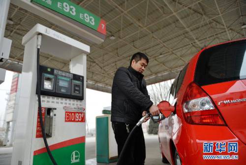 1月26日,车主在河北保定一家加油站为机动车加油。