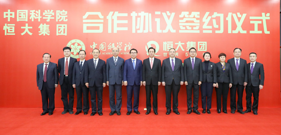 中国科学院院长白春礼,副院长相里斌、张涛等院领导;恒大集团董事局主席许家印,董事局副主席兼总裁夏海钧,副总裁刘永灼,健康产业集团董事长谈朝晖等恒大高管出席了签约仪式。