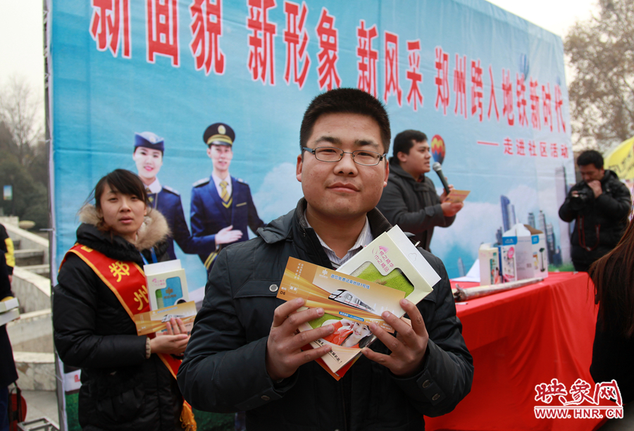 映象网讯(记者 段晋哲 实习生 宋亚楠/图 阮海峰/文) 郑州地铁1号线在今年底开通试运营,为了帮助广大市民了解地铁的规划建设情况,熟悉地铁安全文明乘坐知识,12月17日下午2点, 由郑州轨道交通有限公司、映象网和河南人民广播电台新闻广播共同举办的郑州地铁进社区活动在紫荆山公园拉开帷幕。