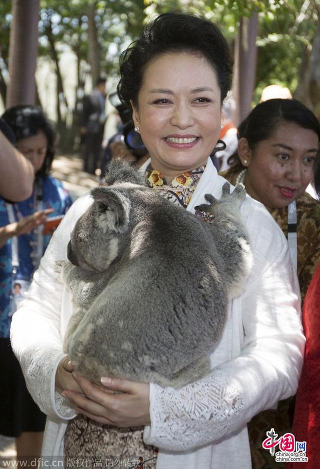 中国网11月15日讯 当地时间2014年11月15日,澳大利亚,彭丽媛参观位于布里斯班河畔的全球最大考拉保护区龙柏考拉动物园。