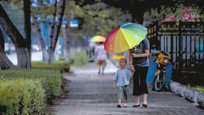 昨日下午3点左右,长春上空开始下起小雨。南湖大路上一位母亲刚刚接到幼儿园放学的孩子 新文化记者 郭亮 摄