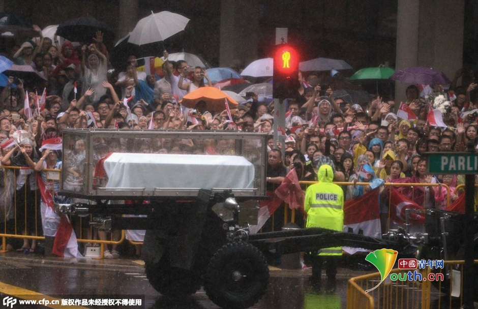新加坡民众冒倾盆大雨护送李光耀灵柩