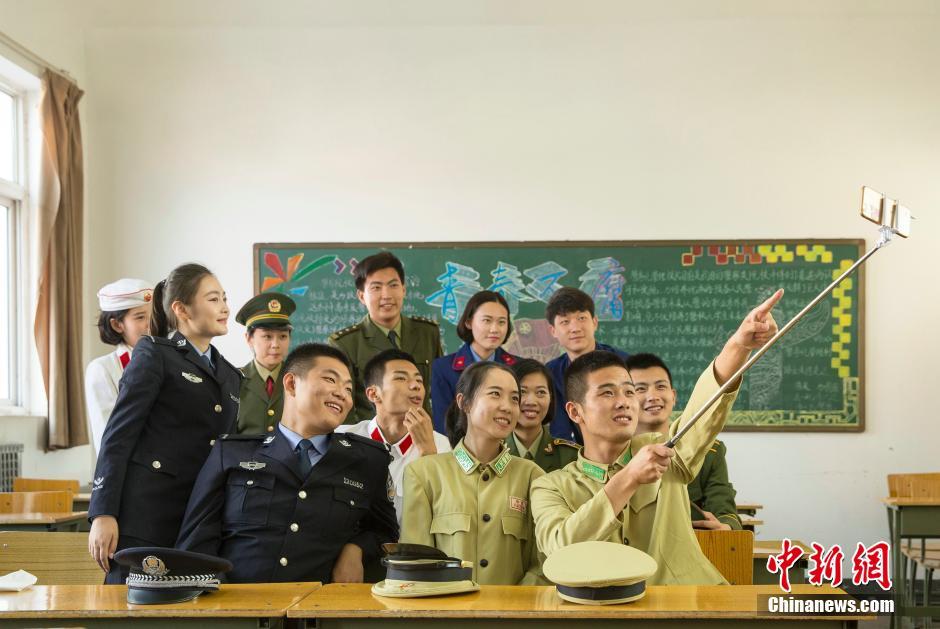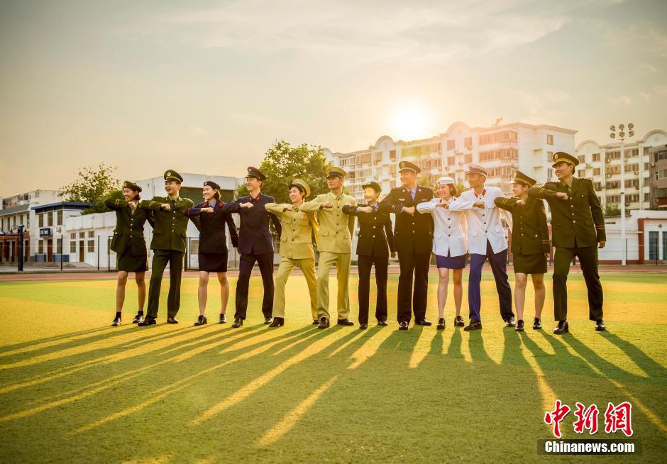 6月25日,在河南省郑州市的铁道警察学院拍摄的创意毕业照。又是一年毕业季,当日,铁道警察学院的“准警官”们怀着对公安事业的热爱和对公安前辈的景仰,以别样的警服秀,讲述铁警校园的青春故事,演绎人民警察服饰66年的发展变化。中新社发 冯磊 摄 图片来源:CNSPHOTO