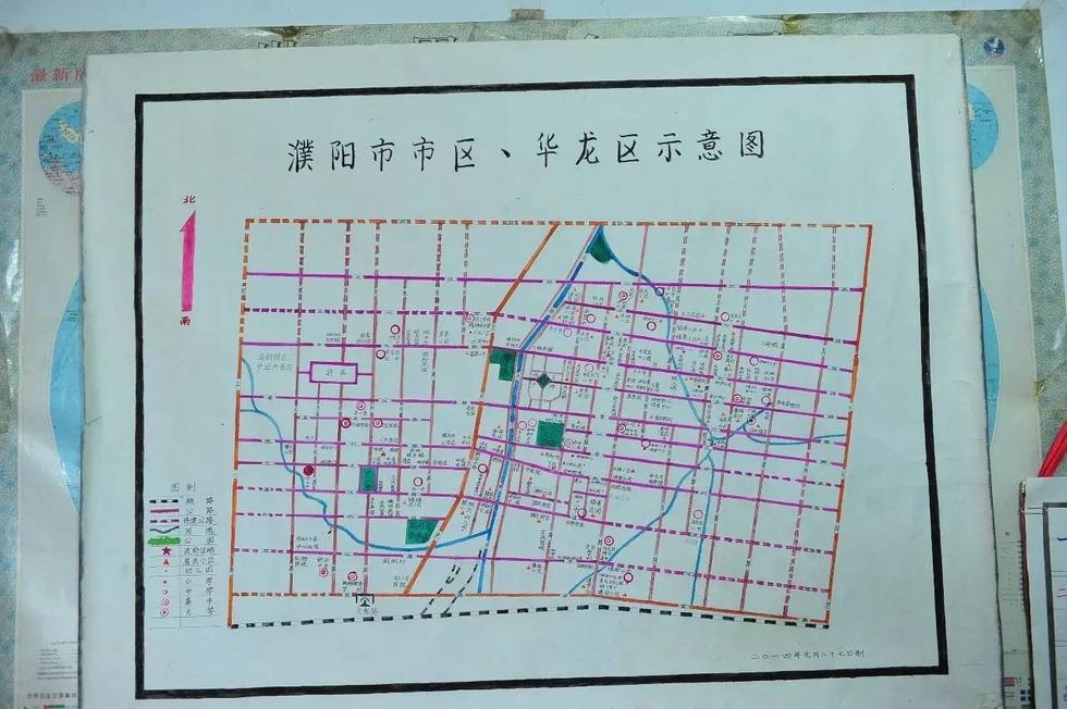 于是,76岁的他开始白天骑车走街串巷,沿途掏出纸和笔进行勾勒、记录,标注街道、商铺、路线,画出简易地图;晚上,他就从厨房拿出面板,当作绘图板认真画图。就这样,他利用两年时间,绘制完成市区主要单位商铺示意图、华龙区主要单位商铺示意图、濮阳市道路交通图等4张地图,成为当前濮阳市最新地图。