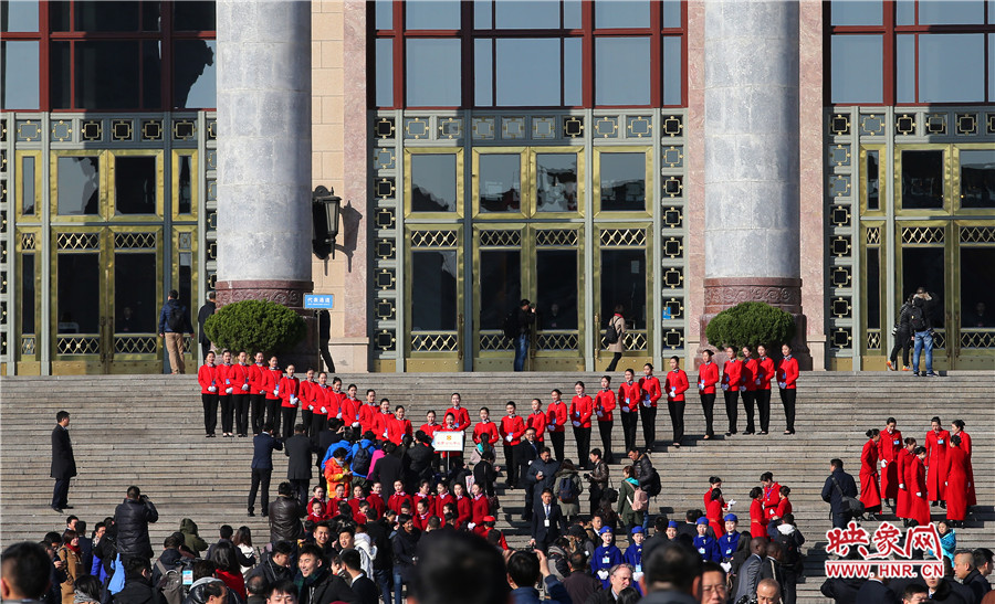 映象网北京讯(大象融媒飞象队记者 段晋哲 文/图)2017年3月5日,第十二届全国人大五次会议在人民大会堂召开。场外的记者、安保人员、服务人员、保洁人员等都用自己的方式参与其中。他们在天安门广场上和人民大会堂前,都留下了自己最美丽的身影。