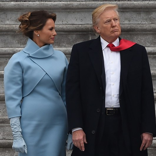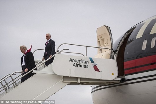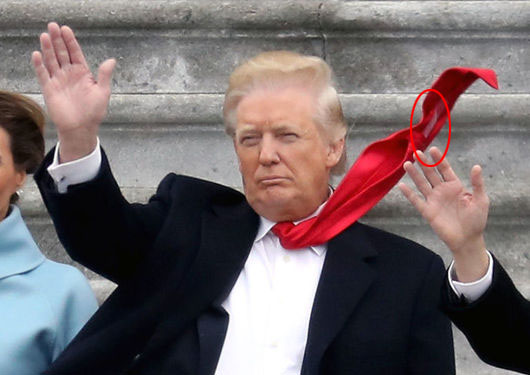 去年12月,他赢得大选后,被拍到与彭斯一起走下飞机。狂风大作,彭斯把领带扣在西装里,特朗普则任红领带随风狂舞,当然还有领带背后的胶带。