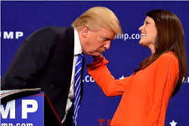 去年10月,特朗普在迈阿密的一次竞选活动后与自己名下的高尔夫球场员工合影。这位调皮的大妈还与他的红领带“热情互动”,场面一度十分尴尬。