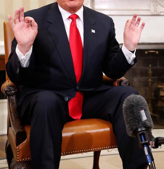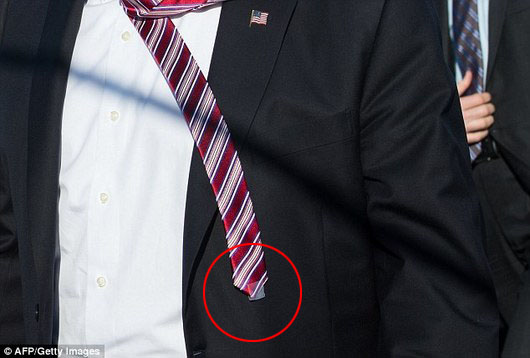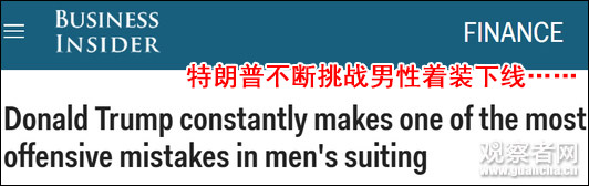 报道称,领带的正确系法是保持在腰带上方位置,稍微过一点也无所谓。但特朗普的领带就显得过长了。