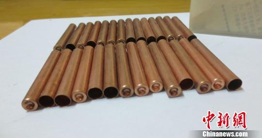 经了解,该军用雷管系胡某在1979年对越自卫反击战留下,一共28枚,铜质外壳,长为6cm,直径约1cm,无引线。