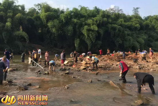 四川新闻网泸州11月16日讯 有网友向记者报料称,泸州合江几百人都在河边挖宝,有人为此赚了几十万。究竟是什么宝贝?让村民疯狂起来,今(16)日,记者前往该地进行采访。