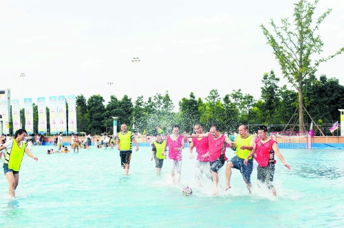 据绿博园工作人员介绍,本次水上足球赛在7月19日至8月17日期间的周六、周日各征集10名参赛队员进行比赛。在这里,你可以不是专业球员,也可以不是铁杆球迷,只要你喜爱足球,热爱生活,就能报名参加。主办方还为参赛选手准备了精美奖品。
