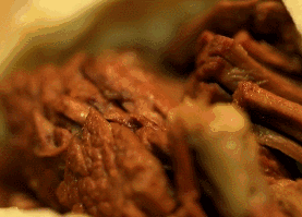 这样一翻一挂,传统的肉夹馍就变成了贴心的肚兜兜饼,可以安安心心享受美味肉夹馍了,不用担心汤汁会流到身上啦!