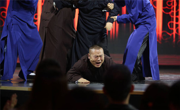 表演过程中,众人为了捧哏、逗哏谁更重要唇枪舌战,甚至一度情绪激动起了“肢体冲突”,尽管逗哏小岳岳使出女子打架经典招式“风火轮”袭击孙越,但终究敌不过占有明显身体优势的捧哏孙越,几秒钟就倒地不起。