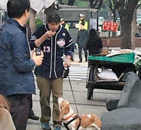 据《朝鲜日报》报道,当天上午11时左右,从照片中可以看到,李柏特大使身穿平日钟爱的职业棒球队斗山熊队服,一边吃着东西一边抓着宠物狗的牵引绳。而李柏特遛狗时,光化门周边正聚集着参与下午2点的白南基遗体告别仪式的吊唁队伍。