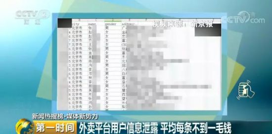 外卖平台用户信息泄露 平均每条不到一毛钱